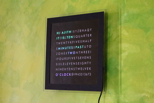Personalised word clock works on 5v wall socket or USB power input. Can be used as wall or table clock.