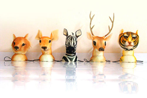 Created with FRP, PVC, Metal and Magnets. Powered by 12v rechargeable battery, controlled by RF Remote. It can make sounds, blink eyes and rotate head while rolling its body.